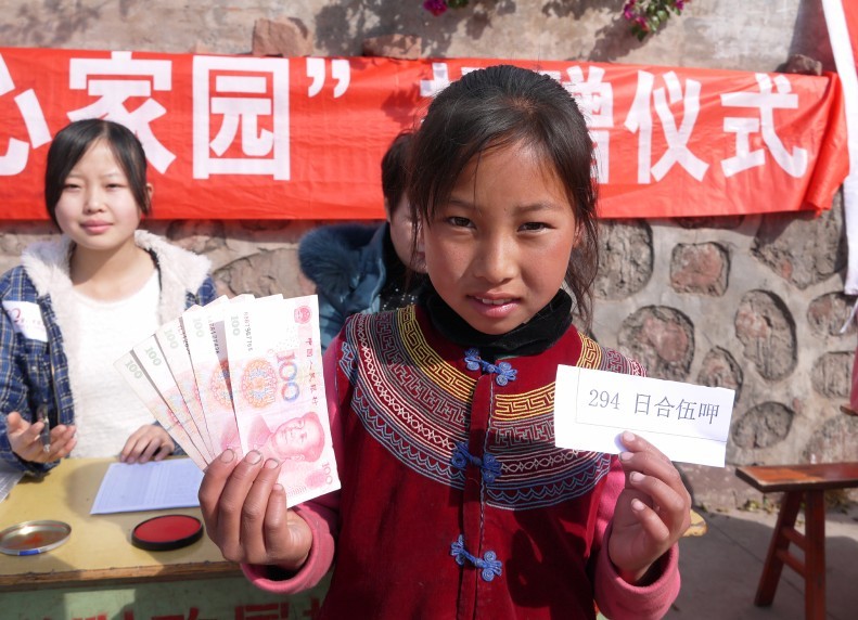 大年初二至初五,爱心家园志愿者“草根老李”等一行三人从北京前往凉山发放了第一批春季助学款,来自普格县特补乡中心小学、西昌市高草乡高草小学等八所学校的117名品学兼优的学生接受了共58500元善款,每人每学期500元。助学款发放完毕后,志愿者们还带着春节的问候和食物到一些贫困家庭进行了慰问走访。