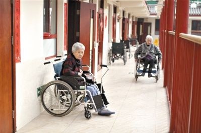 2013年3月9日,北京一家养老院,老人坐在轮椅上。资料图片/新京报记者 侯少卿 摄