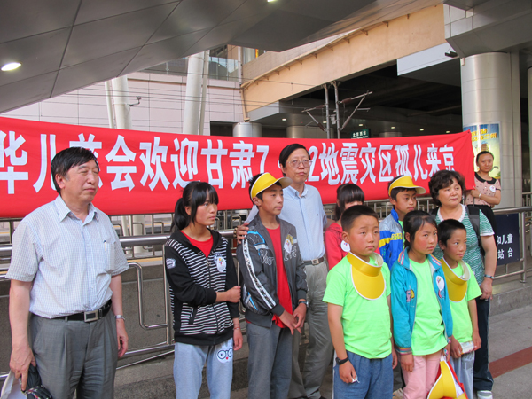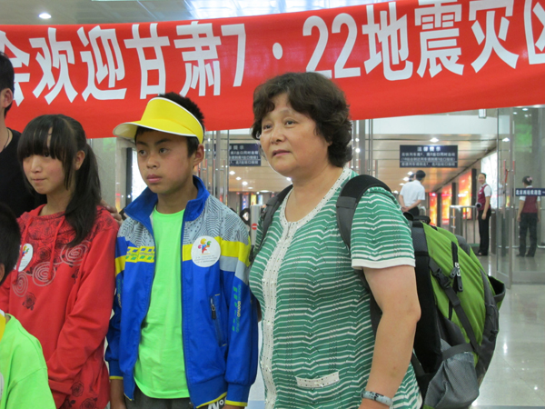 2013年7月30日下午3点半,7•22甘肃地震中失去双亲的7名孤儿乘G656次列车抵达北京西客站。中华儿慈会常务副秘书长王林及工作人员在车站迎候了这批特殊的客人,给这些刚刚失去双亲的孩子送去了首都人民的问候。