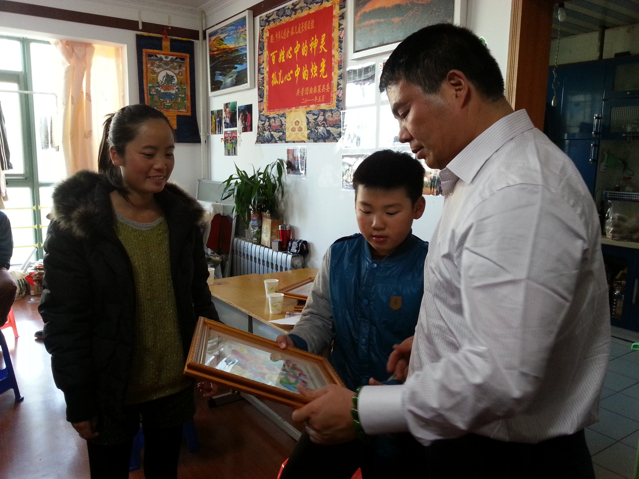 2013年11月3日上午,包头市凯越露天煤矿王孝茂董事长携家人来到中华儿慈会孤儿救助中心天通苑“孤儿成长之家”,看望在那里生活的甘肃地震孤儿。王孝茂董事长拉着孩子们的手,关切地询问他们家里受灾情况和在北京生活学习情况,并安慰鼓励孩子们要坚强的面对生活。他告诉孩子们说,“我以前也是从穷苦农村走出来的孩子,那时就坚定一个信念,就是努力让家人生活的更幸福。现在通过自己的一番打拼,有能力做更多的事,我就希望帮助那些身边亟待帮助的人。希望你们在何妈妈身边好好生活学习,将来长大后通过自己的能力去回馈帮助别人,王爸爸陪你们一起把“孤儿之家”的大爱传承下去。”孩子们听后倍受鼓舞,表示一定会好好学习,励志成才。当王董事长了解到目前甘肃孩子长期学习生活费用还没有落实,随即表示他将资助7名甘肃孩子到高中毕业,以解决孩子们学习生活的后顾之忧。孩子们也向王董事长送上他们亲手制作的衍纸画表示感谢。临别前,王董事长和孩子们依依不舍,紧紧拥抱在一起。
