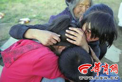 2013年7月22日,岷县,地震发生后,无助的褚爱红和弟弟妹妹偎依在一起