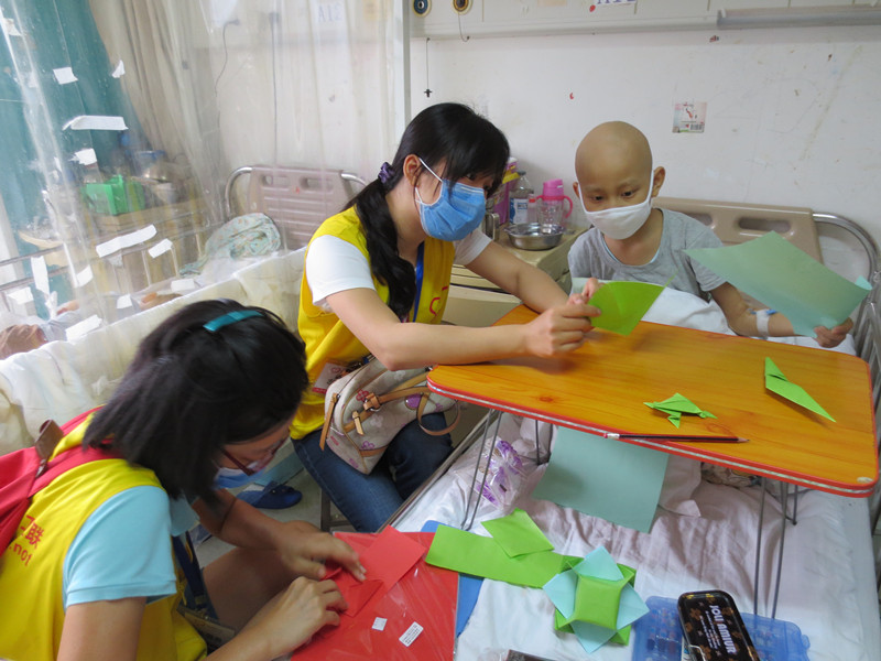 根据白血病患儿的陪护需求,分配志愿者与孩子结对,二对一进行陪护。
