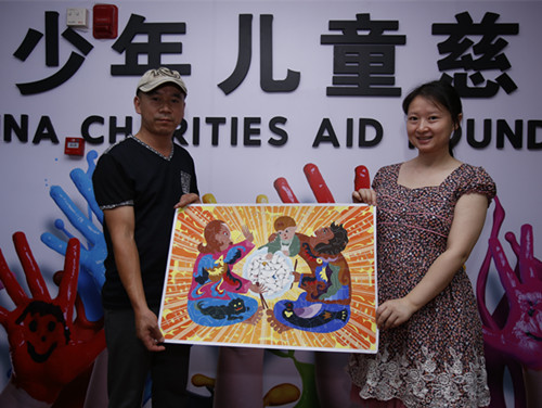 这次,刘成思爸妈来北京,是从吉林坐了15个小时的火车赶来的,是来北京的北大医院问询病情的。然而,他们下火车的第一件事,就是赶往爱心家园义工联,带来了孩子和爸爸近期的绘画作品。孩子妈妈说:“儿慈会爱心家园义工联为我们孩子筹到了钱,让她能够及时接受治疗,孩子特别感激爱心家园,感激社会上的好心人。这是孩子在病房里画的画,由于身体虚弱,每幅画大约需要画一周时间。孩子说好心人为她捐款,她现在没法报答大家,只能用这些画来表达感激之情。我们孩子说了,等以后病好了,挣钱了,她也向爱心家园义工联捐款,来回馈社会上好心人的帮助?!焙⒆勇杪枰槐咚底牛槐咭讶壤嵊?。