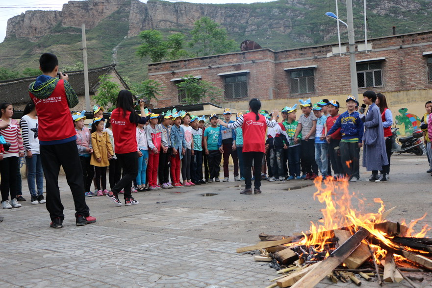 白天上完课 志愿者们给孩子们开了一场热闹的篝火晚会