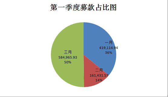 童缘资助中心第一季度募集善款共计:1,165,512.44元,童缘资助中心第一季度支出总计:965515.02元,每月募款及支出占比情况如下图: