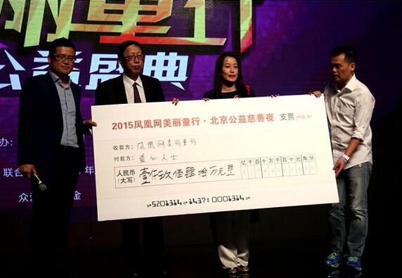 最后,这场慈善盛典在一片和谐温馨的气氛中结束,凤凰网高级副总裁徐进先生登台公布,2015“美丽童行”公益慈善盛典北京场募得善款总额为1940万,其中主拍总额1053万,定向捐赠总额844万,默拍加认捐卡总额42.7万。凤凰网高级副总裁徐进先生继续公布,2015年度“美丽童行”公益慈善盛典全年募得善款总额为3275万元,其中还包括厦门场的518万和杭州场的817万。