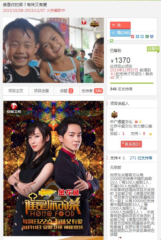 还有我们和京东众筹、安徽卫视的合作;