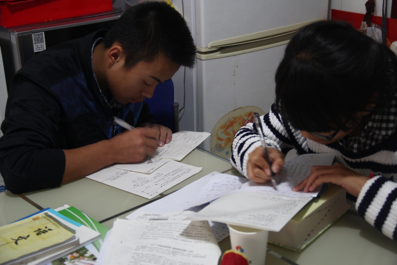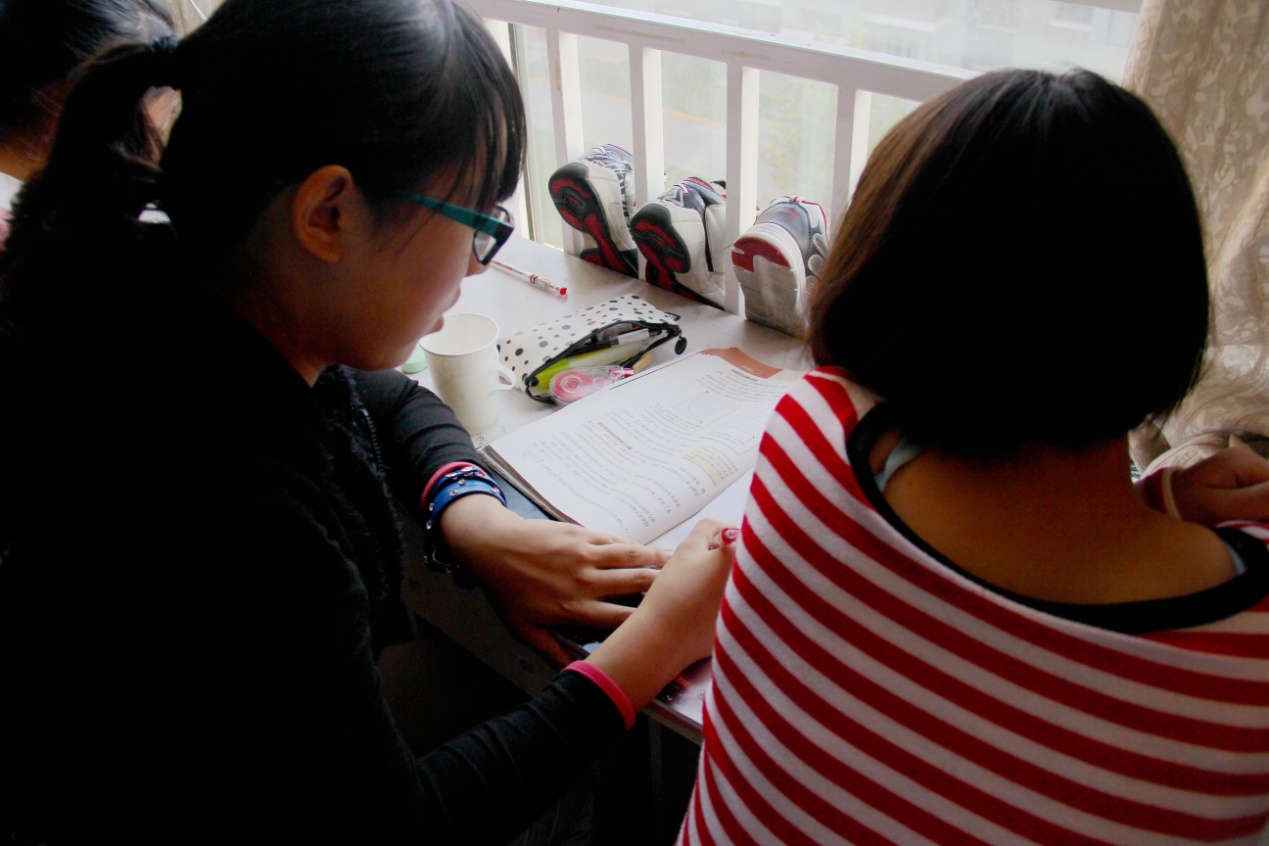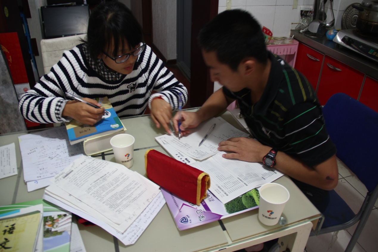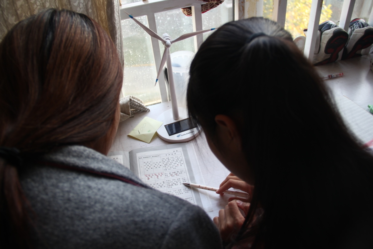 (这是江琴认真补课,虚心向大学生姐姐学习的情形。)