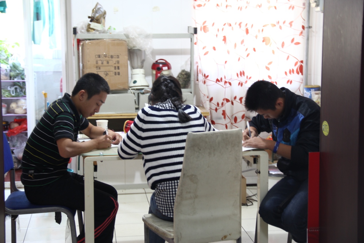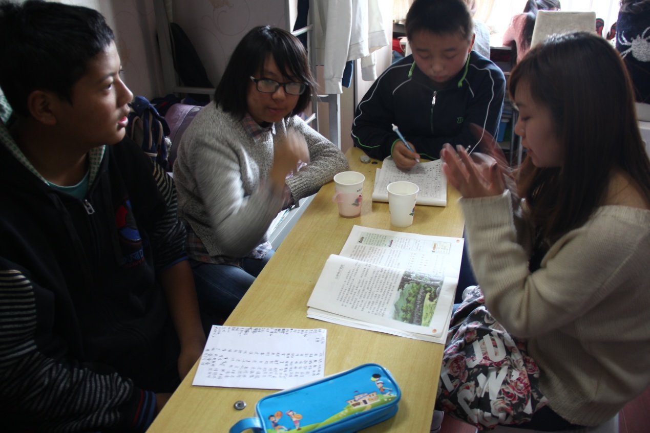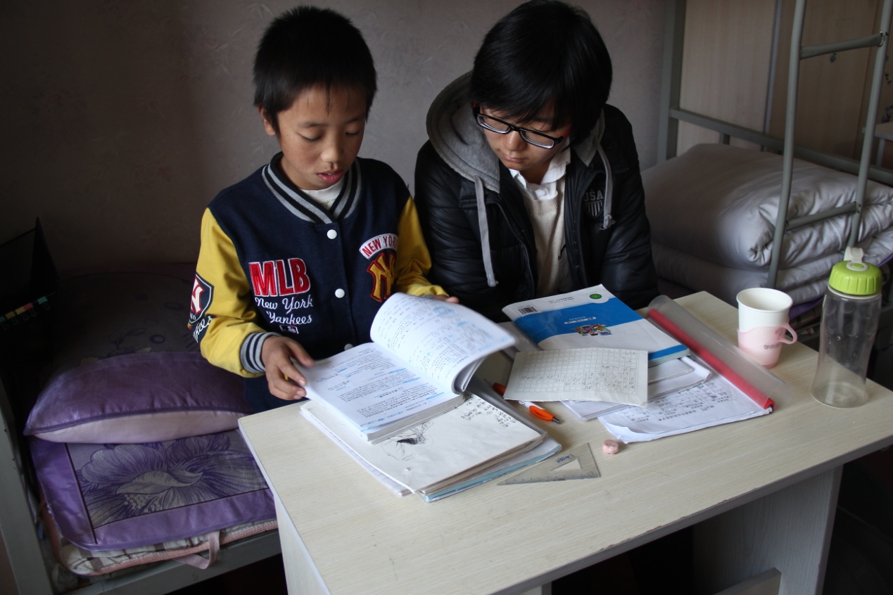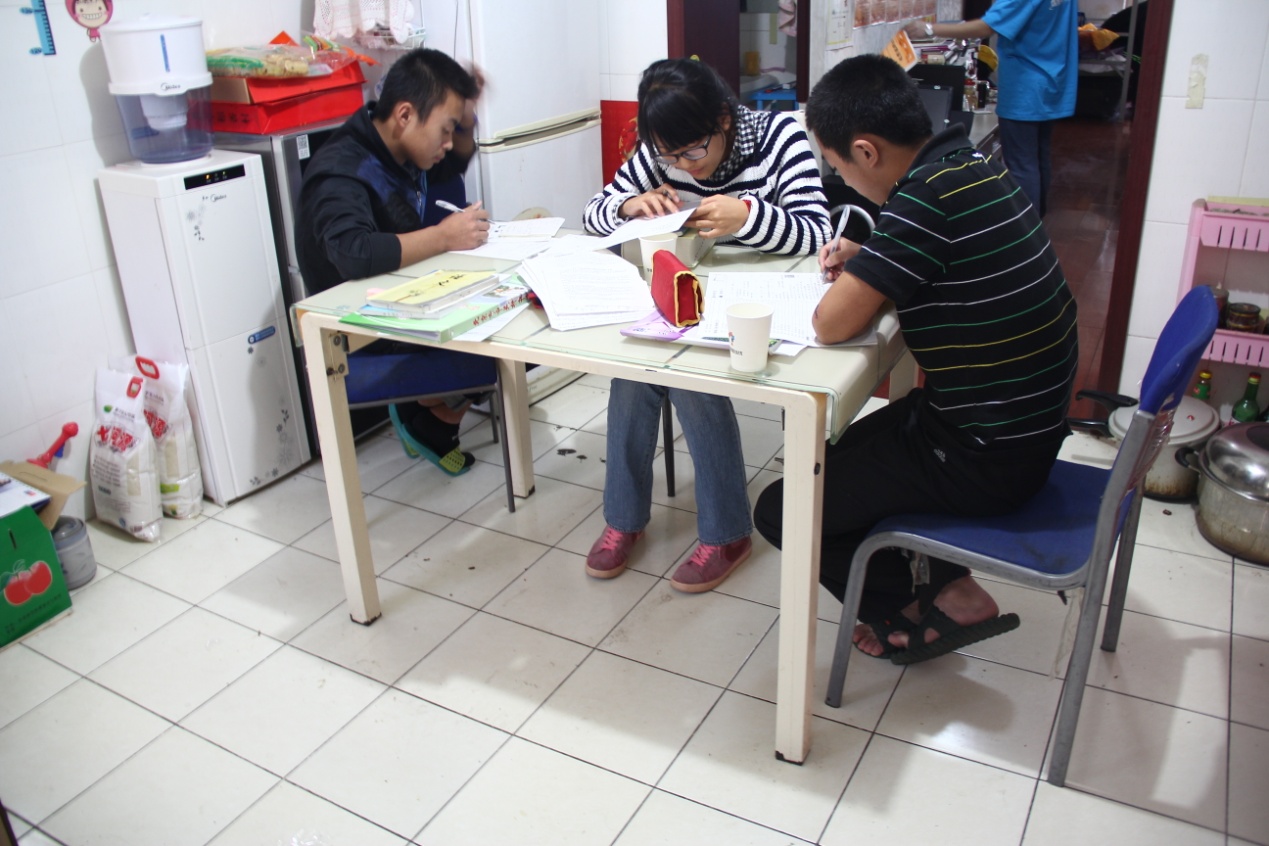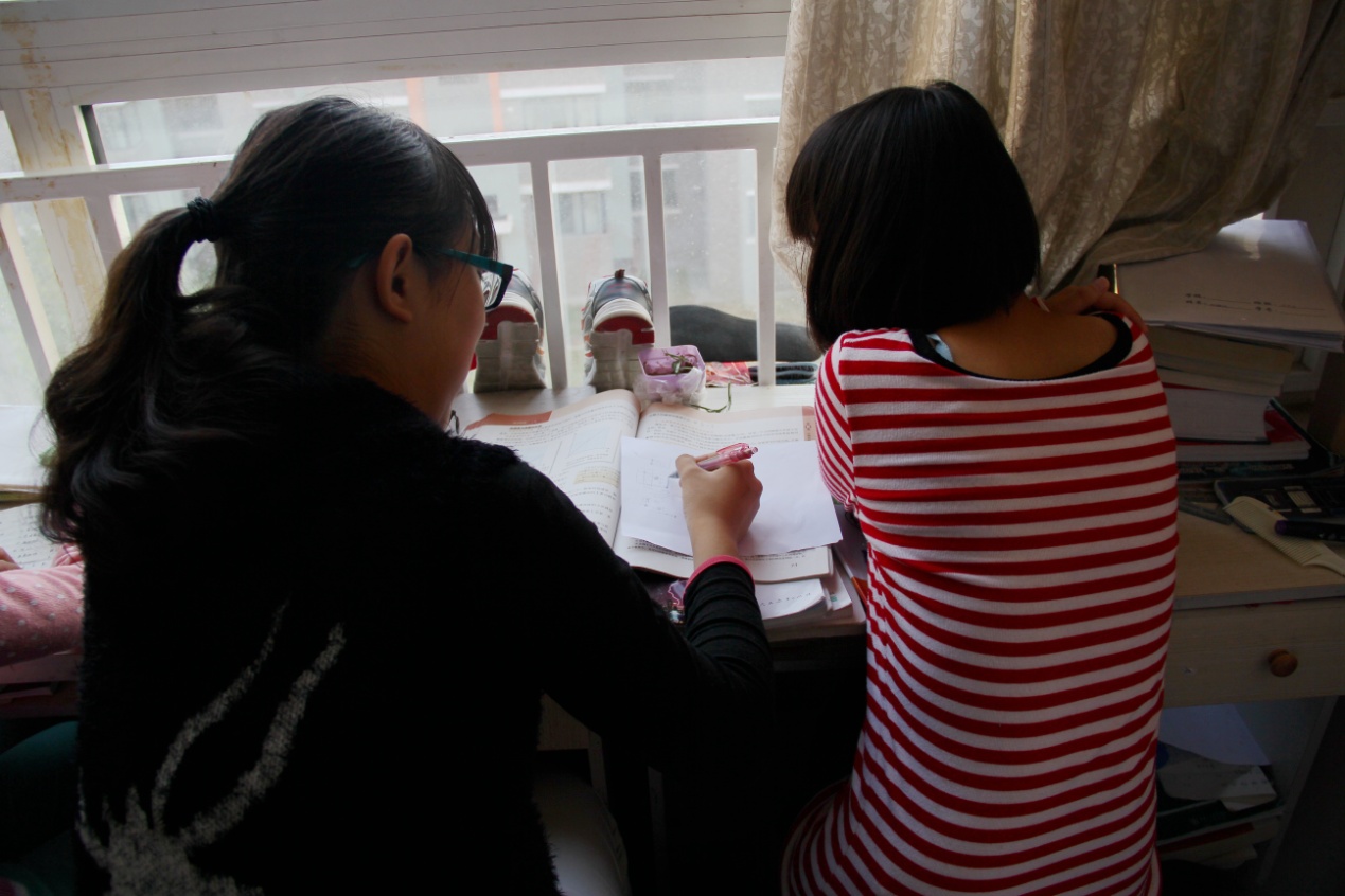 (这是江琴认真补课,虚心向大学生姐姐学习的情形。)