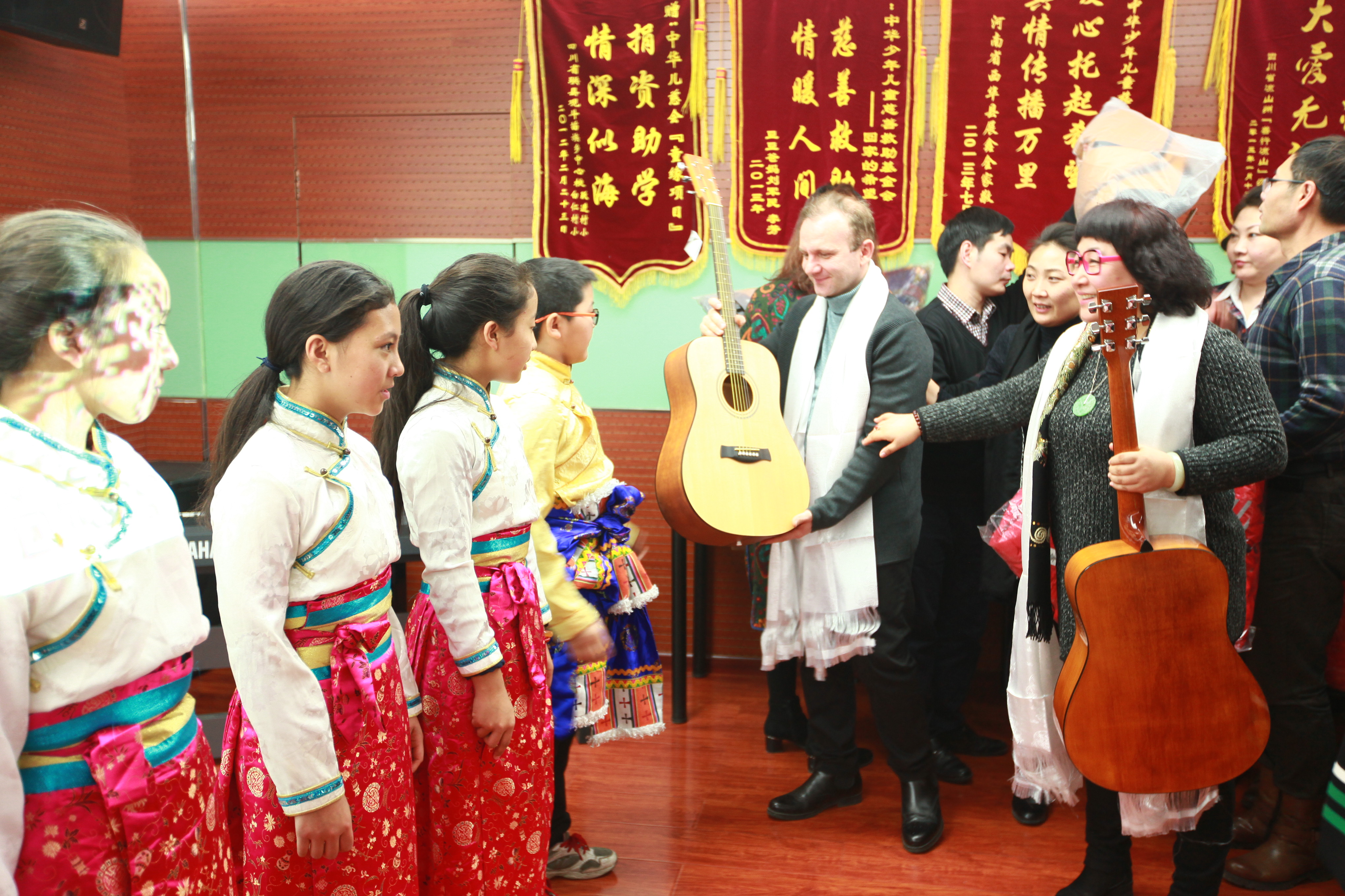 活动期间, CICARA的嘉宾为孩子们送上了民谣吉他、重音口琴、专业竹笛、竖笛等音乐器材及羽绒服等物品。