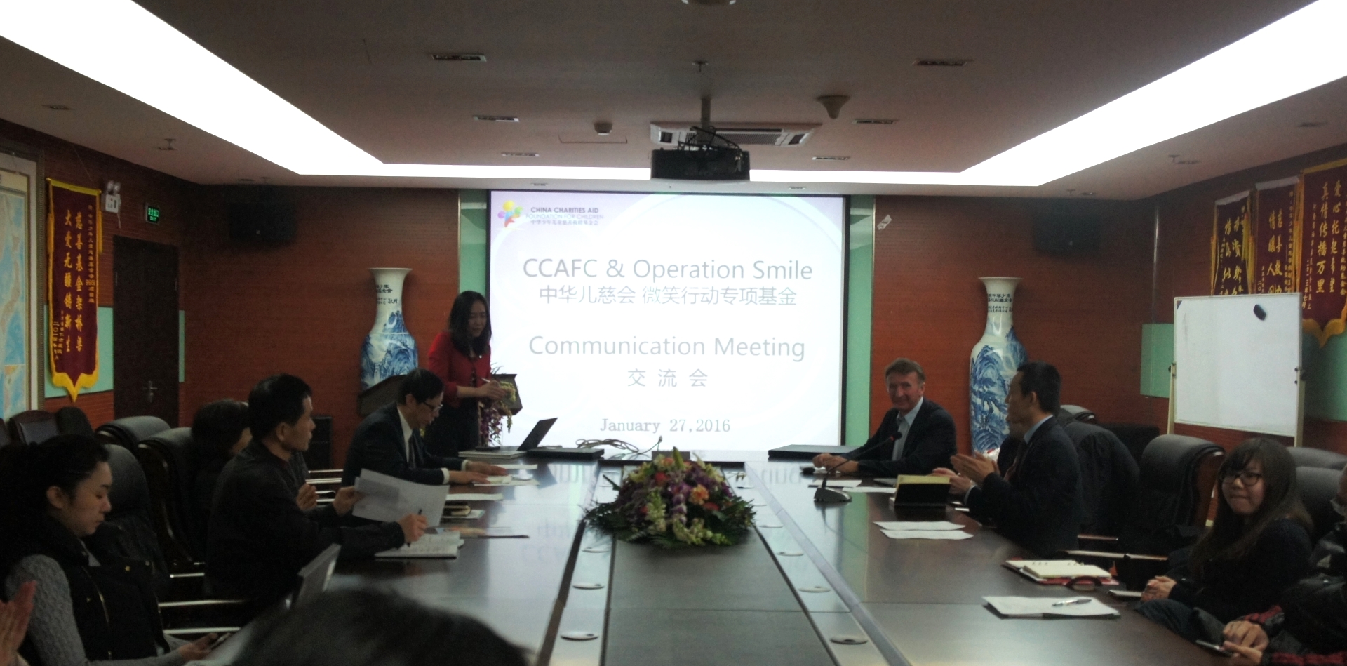 2016年1月27日,中华少年儿童慈善救助基金会(以下简称“中华儿慈会”)微笑行动专项基金交流会在中华儿慈会中扶国际会议室举行。中华儿慈会理事长兼秘书长王林,微笑行动首席执行官Wayne Zinn,微笑行动大中华区总监赵佳等人作为嘉宾出席。