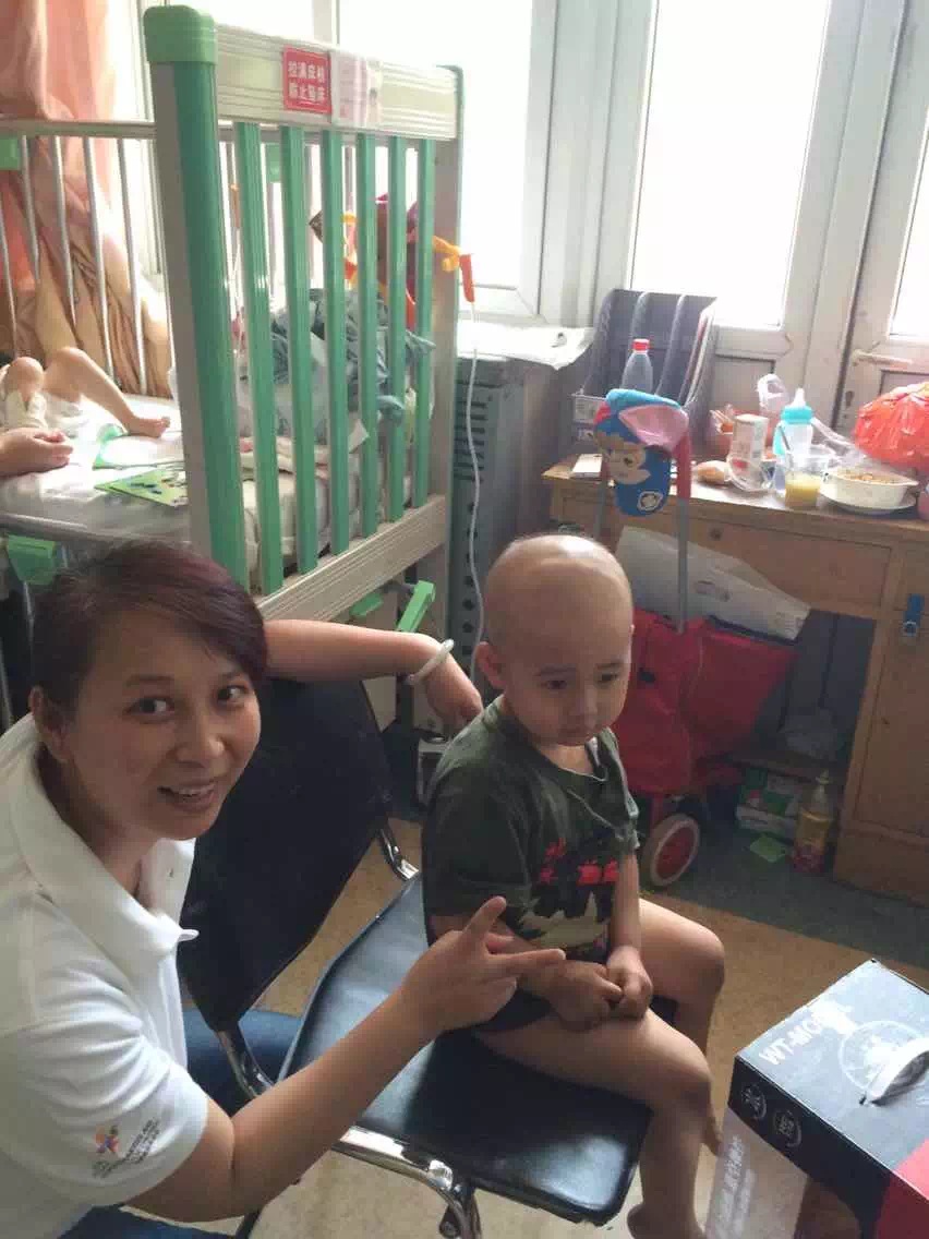 赵家祺患有视网膜母细胞瘤,几乎是看不到东西的,每次只要抓到妈妈的手就不会放开。家祺还有两个化疗,这次化疗完反应很大。血小板低、食欲不振已经有10天没怎么吃过东西。这期间不间断的输血、输血小板。