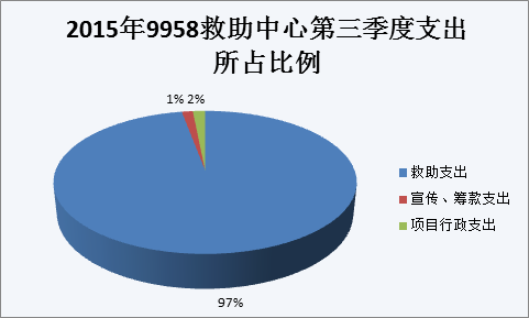 2015年9958救助中心第三季度共计支出17,944,980.19元,其中救助支出17,423,167.89元,宣传、筹款支出247,211.5元,项目行政支出274,600.8元。