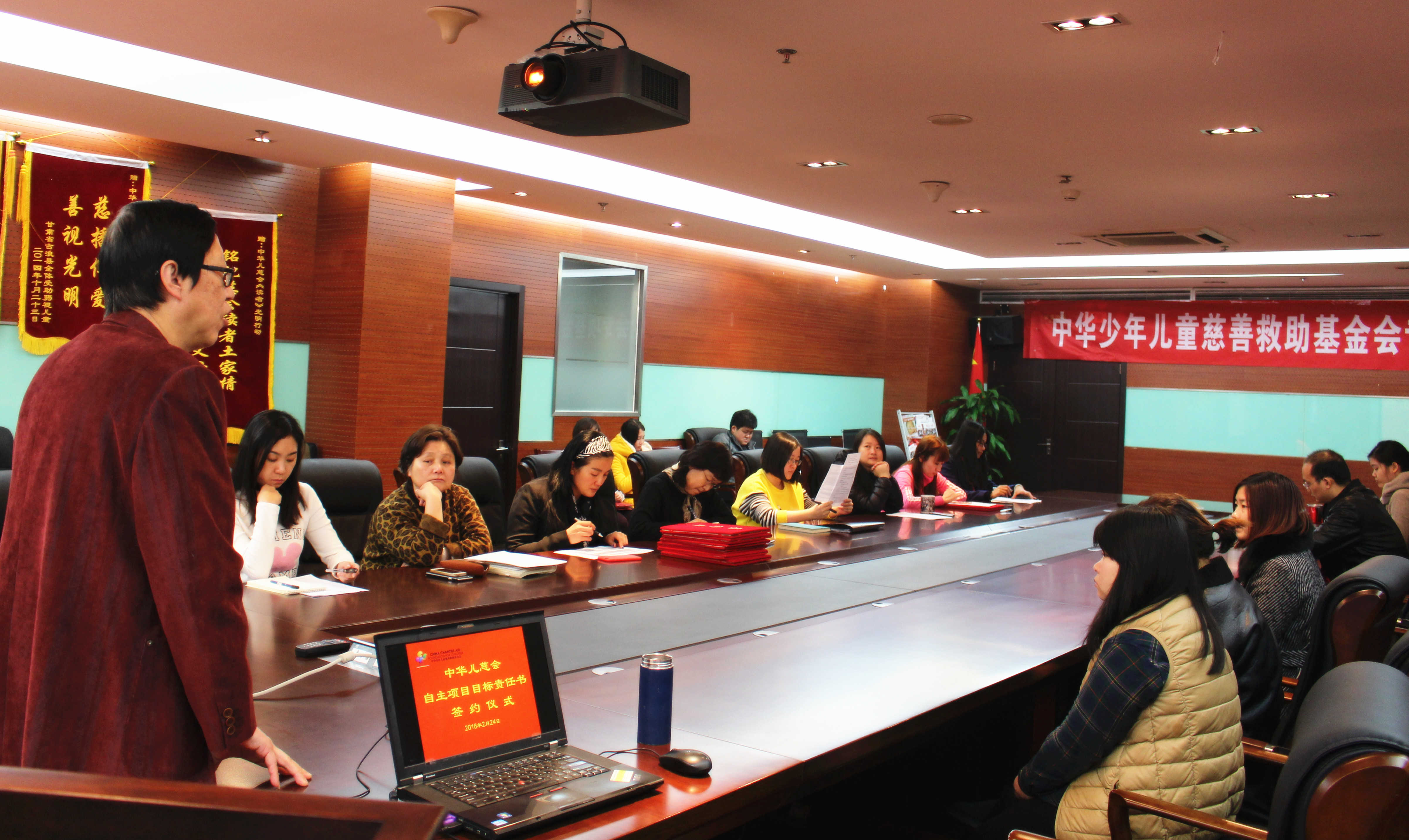 2016年2月24日,中华少年儿童慈善救助基金会(以下简称中华儿慈会)在会议室召开“2016年度自主项目签约大会”,中华儿慈会全体工作人员参加。