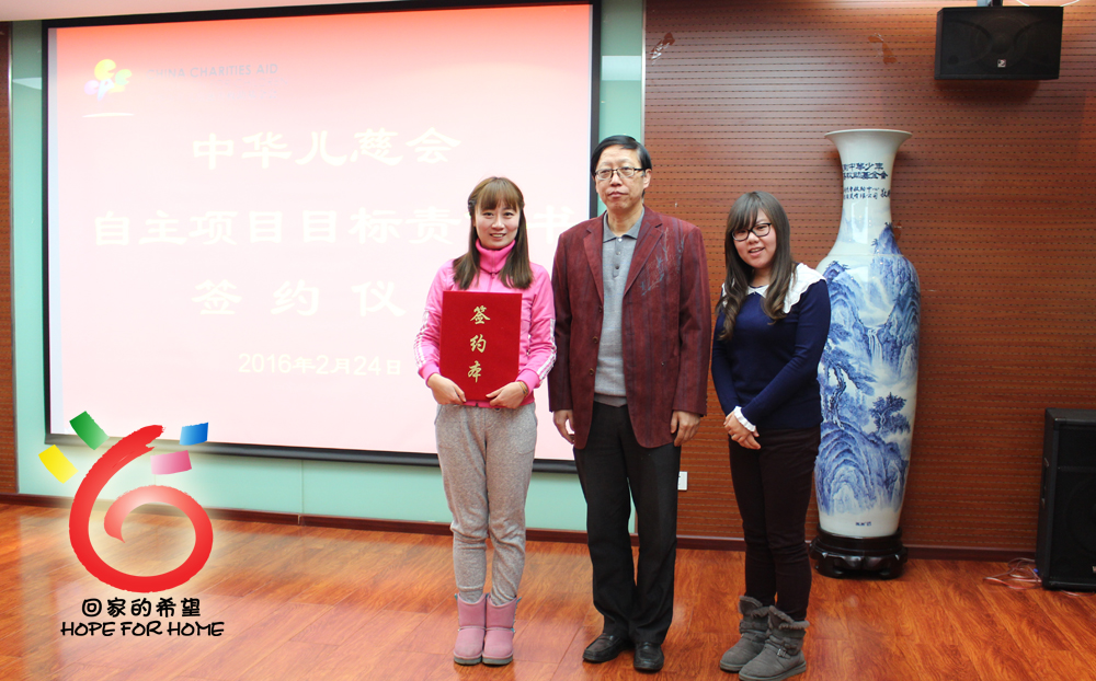副秘书长徐惠芳代表秘书处与中华儿慈会7大自主项目:9958救助中心、童缘资助中心、益童成长中心、爱心家园救助中心、回家的希望、《读者》光明行动、起点工程签署了《2016年自主项目工作目标责任书》,对项目的执行、募款等多方面进行了任务指标的细化,更进一步推动了儿慈会的项目目标管理。