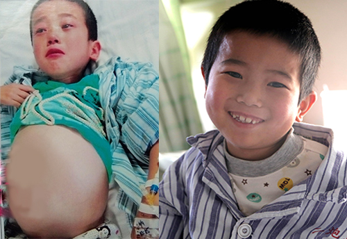 8岁男孩谢国有,湖南省涟源市人。父亲发现孩子的肚子变大了,经多方医院检查,后在长沙儿童医院经过三天的检查,花费5000元得出的结果是布加氏综合症,由于这病属于疑难杂症,且严重晚期,该院无法进行进一步的治疗。便转院至长沙湘雅医院做了核磁共振、CT扫描、医生说这病太严重了,有两个选择,一是回家保守治疗,二是做肝脏移植。