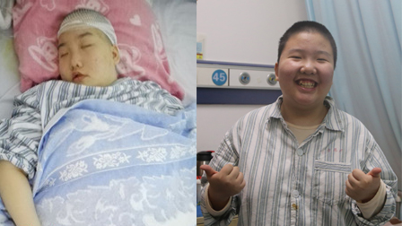 2015年10月27日琦芮在手术昏迷两天之后终于清醒过来了,虽然她的头还是觉得很疼,要靠止疼药来控制。9958救助中心的工作人员去看她,她正躺在床上有滋有味的吃着饼干,“谢谢叔叔阿姨们给了我第二次生命,我会好好配合医生的治疗,我一定会好起来的!”听到琦芮如此坚定的说,妈妈也充满了信心。