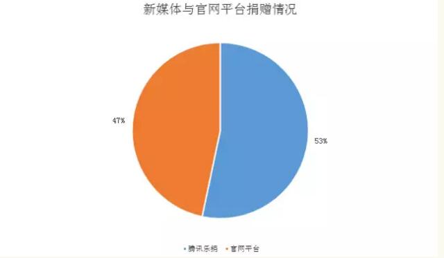 2015年4月--2015年12月期间王正昕儿童肝移植慈善基金总共接受捐赠 2998484.39元,其中新媒体平台腾讯乐捐1598751.39元,占比53%;官网平台1399733元;占比47%。其中官网个人捐款356733元,占比25% ,官网企业捐赠1043000元,占比75%。