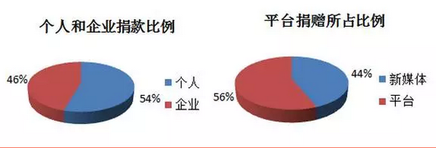 2014年8月-2015年12月期间慈心福佑公益基金总共接受捐赠3913898.18元,其中新媒体1836537.89元,平台2,353,960.29元。个人捐款占比:44%,企业捐赠占比:56%。