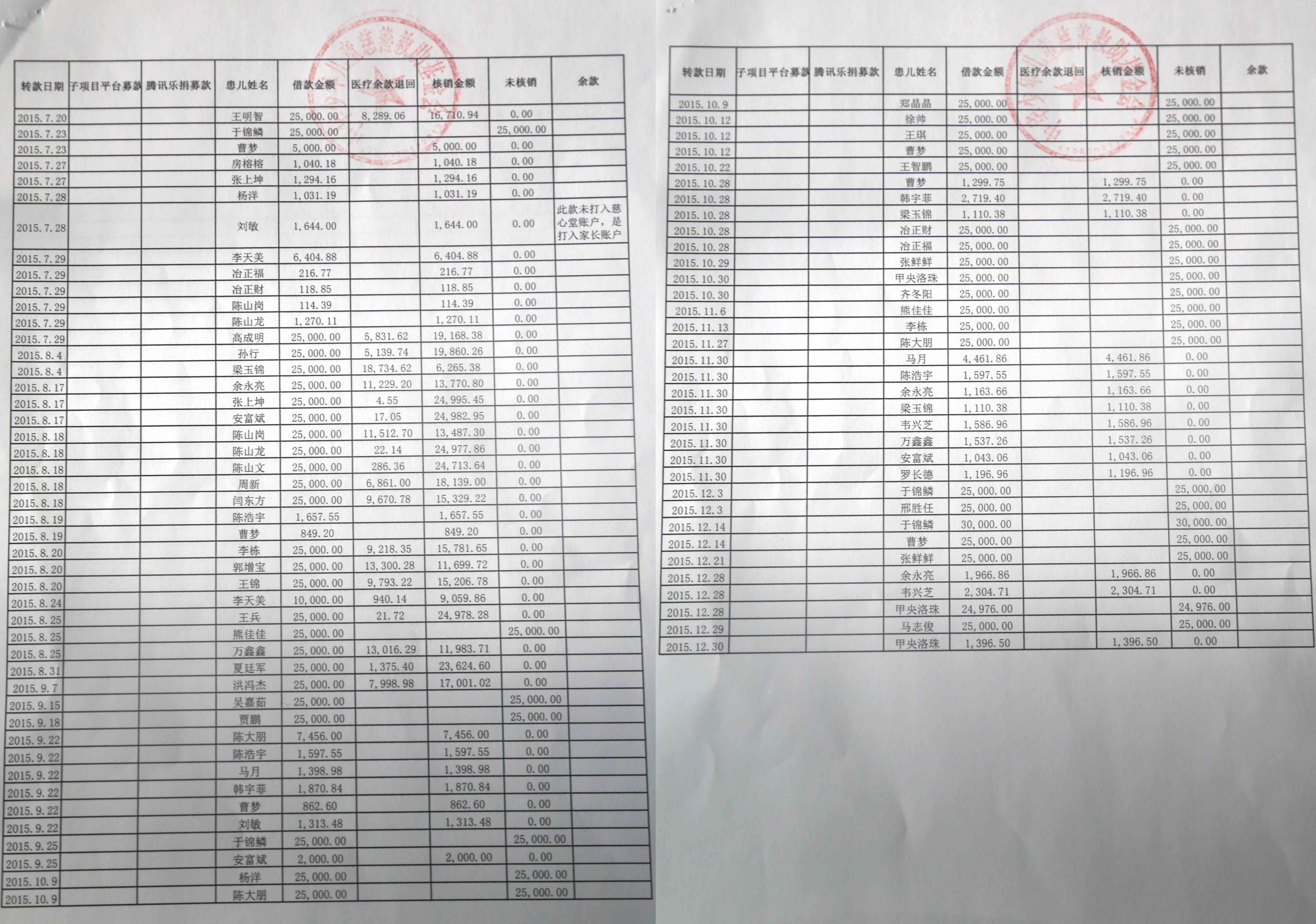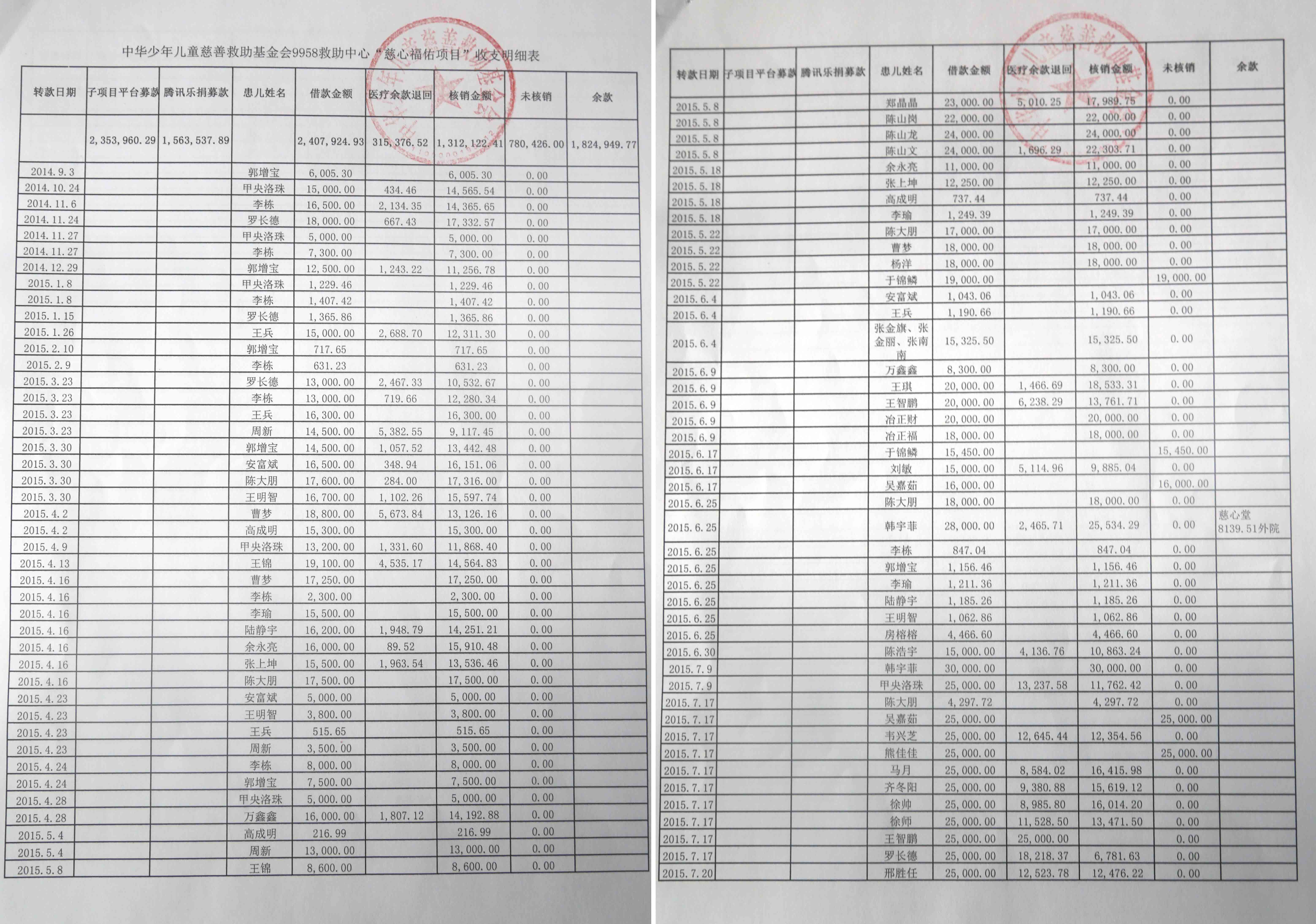 财务的透明在项目中起到非常重要的地位。账目的清晰、明了,对于慈善组织、捐赠人的持续捐赠都起到了关键作用。对于慈心福佑公益基金的申请人,都需要先申请儿慈会9958项目公募平台帐号,评估后确定符合资助条件的患者才给予拨款。拨款后9958项目都会在自媒体平台(如微博、微信等)以及9958项目公募平台、慈心福佑公益基金平台进行转款公布。以便资助者清楚明白资金的使用情况,保证资金的专款专用。当患者治疗结束后,将会再次公布住院治疗的票据及费用明细单。