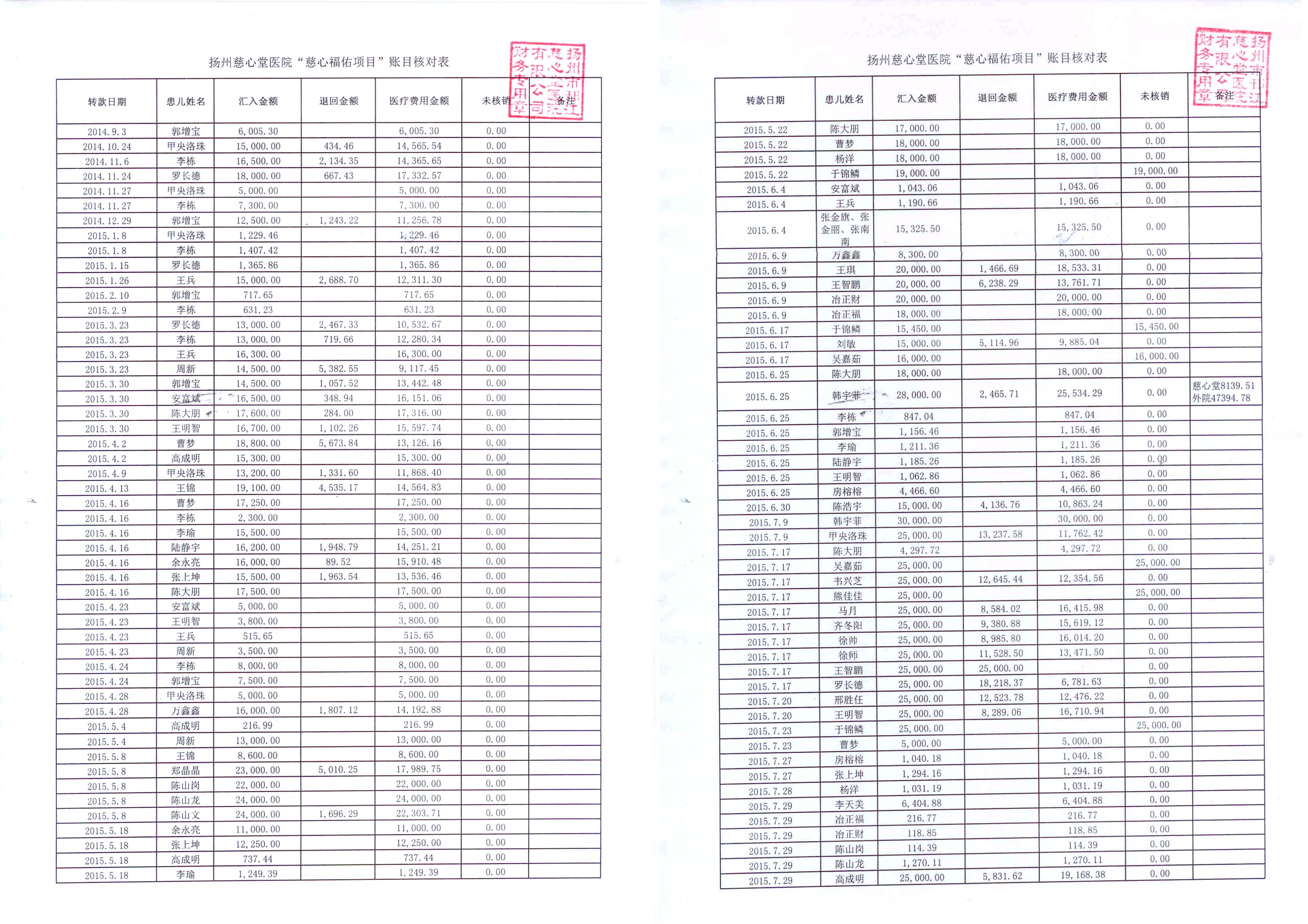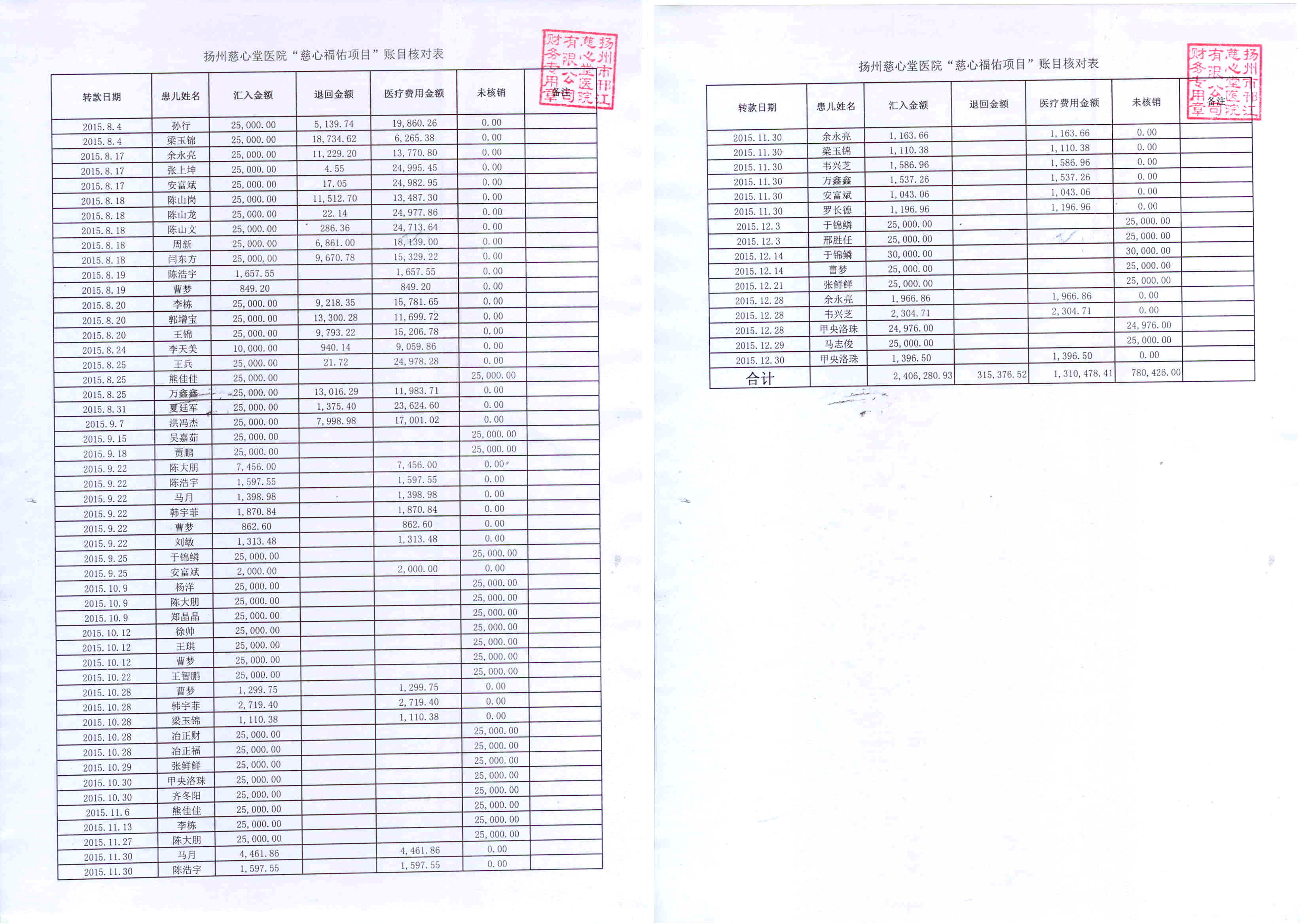 扬州慈心堂医院“9958慈心福佑公益基金”账目核对表