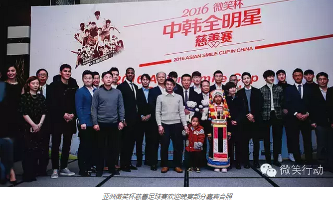 这次"2016亚洲微笑杯“慈善足球赛是由朴智星基金会(JS Foundation)和微笑行动(Operation Smile)联合发起的韩国首个非盈利性足球俱乐部FC SMILE主办,旨在为患有面部畸形的贫困儿童提供安全、高质量的免费手术,帮助他们重获灿烂的笑容。微笑行动爱心大使——功夫巨星成龙、亚洲足坛巨星朴智星、李东国、电视人李辉才、歌手金俊秀等,都是FC SMILE俱乐部的成员。