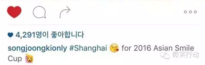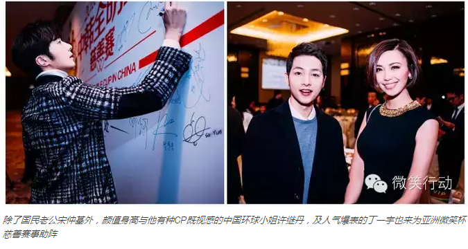 早在宋欧巴还不是“国民老公”的时候,就已经投身公益多年,那张迷死人还不偿命的笑脸就经常绽放在各种弱势儿童救助活动中。帅固然令人着迷,但更让人心醉的恐怕就是又帅又有颗善良的心了吧,快跟我穿越到2016年1月9日,中国,上海,Wuli宋欧巴与中韩足坛及各种娱乐圈大咖齐聚,为“2016亚洲微笑杯慈善足球赛”加油。