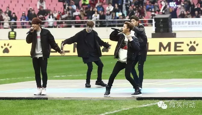 中场休息时,Big Bang的师弟们——2015年最火男子偶像团体IKON现身为慈善倾情表演