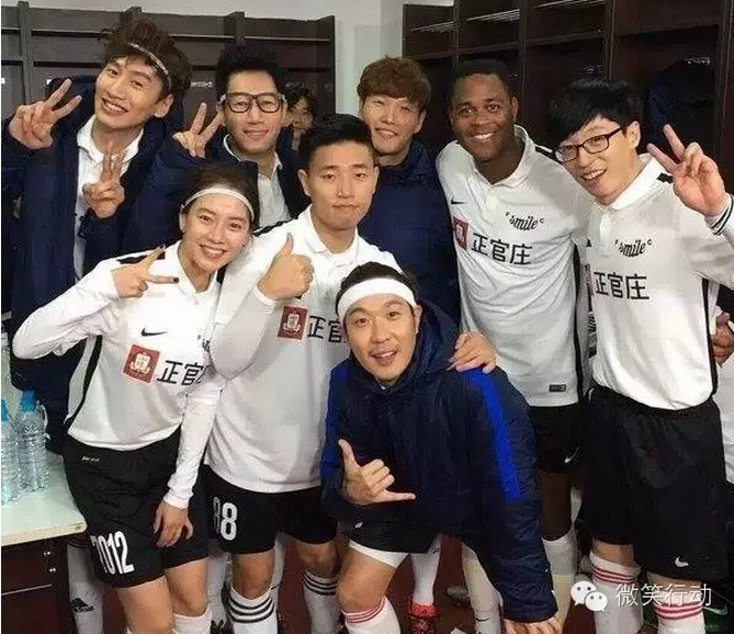 中韩明星与专业球员同场“竞技”,亮点太多,引发全场观众欢笑。Running Man成员亚洲小王子李光洙用生命在搞笑——从头摔到尾,逼得克鲁依维特几次笑??;萌妹智孝竟敢截球,慌得中国队员不知如何“下脚”。