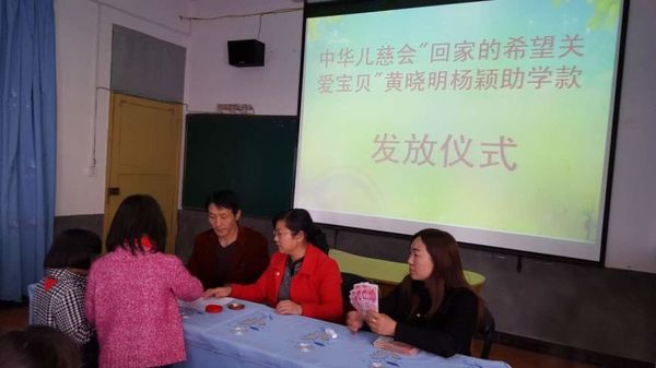 2016年3月23日下午,在贵州黔西南普安县举行了中华少年儿童慈善救助基金会(以下简称:中华儿慈会)回家的希望公益联盟困境儿童第一季度资助款发放仪式。本次发放的捐赠款全部由黄晓明AngelaBaby夫妇婚礼“关爱宝贝”慈善项目资助。