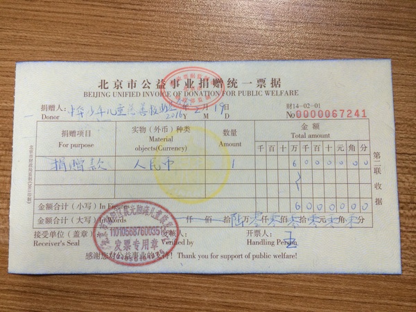 2. “回家的希望”接受的所有捐款,均由中华少年儿童慈善救助基金会开具财政部统一监制的公益事业捐赠专用收据,捐赠人可据此享受“在计算缴纳企业所得税和个人所得税时准予全额扣除”的优惠政策。捐赠人有权查询、监督捐款的使用情况。中华少年儿童慈善救助基金会对做出重要贡献的捐赠人给予宣传报道和授予荣誉。