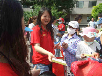 在医院小花园,孩子们早早等候在这里,家园的大姐姐一到便被孩子们围住,拿到新口罩的家长,为孩子戴上新口罩,家长和孩子们都很开心。这份“六一”小礼物虽然很轻,但是,它带来的是爱心企业对这些特殊儿童的深切关爱。