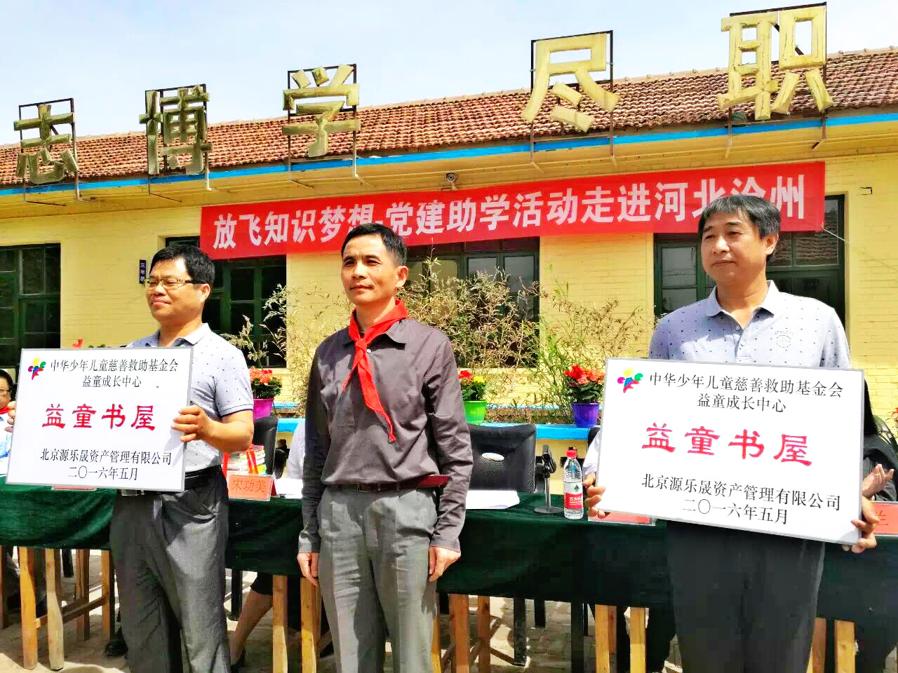 2016年5月26日,中华少年儿童慈善救助基金会(以下简称:中华儿慈会)与国家发改委国际合作中心、河北省沧州市人民政府联合举办“放飞知识梦想”活动,为沧县崔尔庄镇田村小学和前屯小学建立了两所“益童书屋”。国家发改委国际合作中心副主任宋功美、河北省沧州市政府副秘书长肖华、中华儿慈会办公室主任卫中、沧县县委书记毛长军等领导,国家发改委国际合作中心工作人员,田村小学及前屯小学师生代表共200余人参加了捐赠活动。