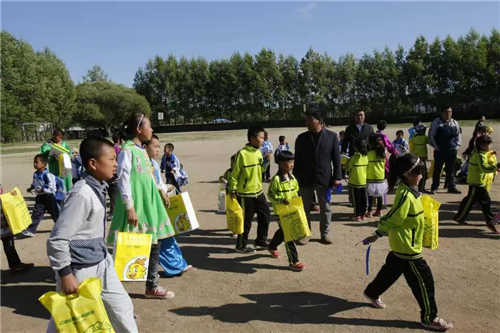 同时,志愿者为每一位学生都准备了一双合脚的运动鞋。不过并不是无条件地将鞋发给学生,而是把它作为奖品,让学生用智慧、担当、勇气和自信通过游戏竞赛等方式来争取得到这双鞋。