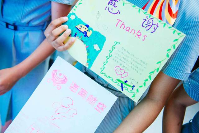 5月31日,孩子们向海航空乘人员奉上亲手绘制的图画,以示感谢。