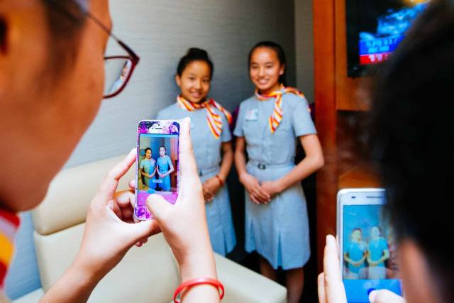5月31日,孩子们换上崭新的空乘制服,高兴地拍照留念。