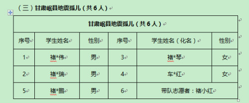 (三)甘肃岷县地震孤儿(共6人)
