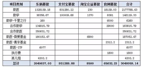 1、6月份爱心家园募款总额为3046059.1元。各平台募款金额及占比,以及各分支项目募款额如下: