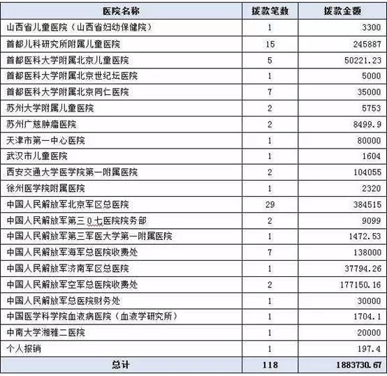 助医117笔,为89名患儿拨付医疗款项共计1883730.67元;