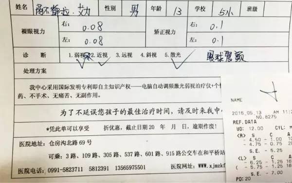 小艾力,13岁,双眼视力为0.08,矫正视力仅为0.1,并且双眼眼球震颤。