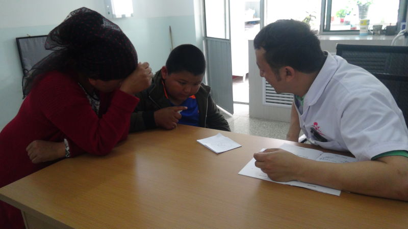曾经就读于新疆和静县第五小学,在他很小的时候就发现看不清东西,经查会碰伤自己,也不能看清老师的板书,因此不得已休学回到了家里,这次筛查,民政局特意通知他来到学校和学校的孩子们一起参加视力检查,他告诉我他特别想回到学校,特别羡慕那些每天背着书包上学的同学,大姐姐,你能帮帮我吗?