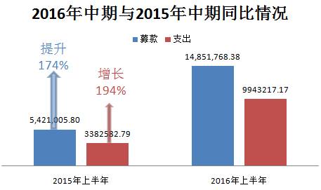 爱心家园救助中心2016年上半年募款总额14,851,768.38元,同比增加9,430,762.58元(2015年1-6月份募款总额5,421,005.8元),同比增长174%;