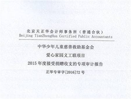 3、爱心家园2015年接受捐赠收支的专项审计报告公示。