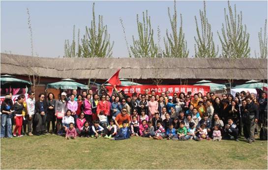9、4月9日,爱心家园组团参加钢丝善行团北京分会在通州的义务植树活动,为百余名志愿者介绍爱心家园。