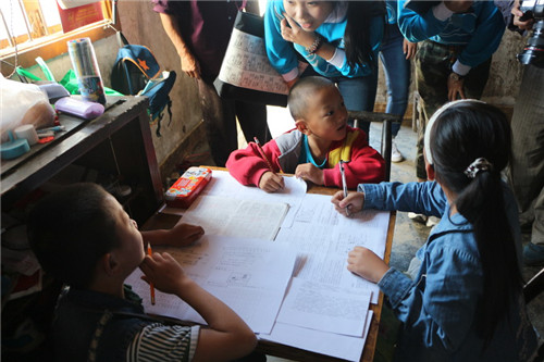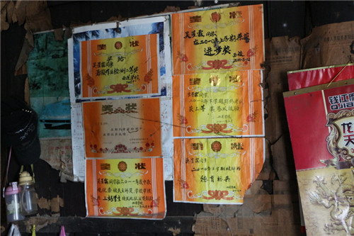 这户家庭是令我们最欣喜的一个,到他们家的时候,三个孩子都围坐的方桌旁边认认真真的写作业,见到我们之后立即就认出了我们,非常热情的给我们打招呼,而且基本都能叫出我们的名字,三个孩子都非常的懂事听话,而且学习成绩也都特别好,家里挂满了奖状。
