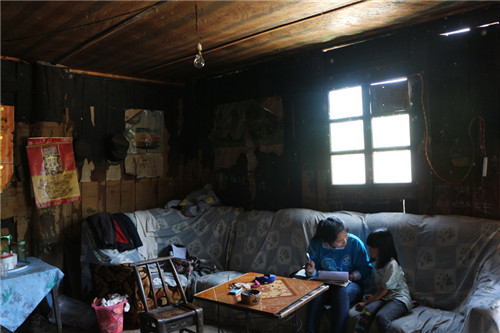 这户人家也住着一个老旧的木房子,看上去也有不少年头了,爷爷奶奶带着孙子、孙女和外孙女三个孩子。