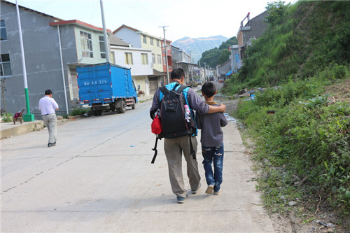 三个女老师跟他聊了好半天,走的时候,他一直站在家门口目送我们,远远的看着他孤单的身影在和我们挥手告别,我们的女老师们就快忍不住要掉下眼泪了,都转头立马跑掉,怕被孩子察觉。