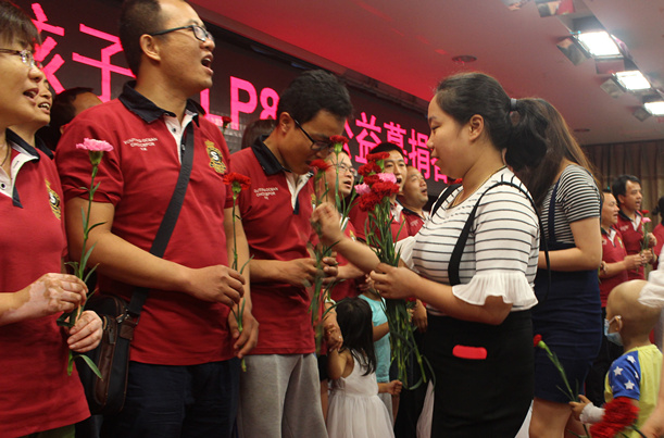 活动现场朴实温暖,充满着爱和感动的气氛。中华儿慈会爱心家园救助中心负责人匡莉芳、航天中心医院副院长刘宗明、航天中心医院血液科主任王静波为大家分享孩子们的故事,呼吁社会上有更多爱心人士关注帮助这些孩子。首批被救助的毕诗琪、樊赫骞、唐睿、高佳琪4位患儿的家长代表,登台倾诉给孩子看病的艰难历程,感恩社会上许许多多帮助孩子的好心人,平凡朴实的讲述让参会人员无不为之动容。DLP8ELP29志愿者团队代表则分享了街头劝募时的感人故事,感恩所有认识的和不认识的爱心朋友。航天中心医院血液科护士长朱凤英带领着刚刚值完夜班的护士们为志愿者团队献上了美丽的鲜花,台上台下许多人流下了激动感恩的泪水。
