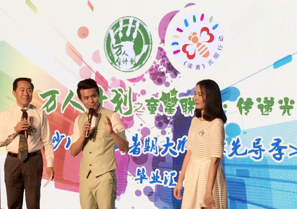 8月18日,“万人计划之童星联动·传递光明”大型公益活动在北京正式启动。此次活动由央视著名少儿节目主持人“青蛙王子”刘波,携手中华少年儿童慈善救助基金会(以下简称儿慈会)“《读者》光明行动”项目共同发起?;疃M谌段谂嘌胖矢春闲鸵衾志缜嗌倌耆瞬牛蛟旒嘌?、排练、甄选、演出、公益为一体的人才培养模式。据了解,每一位参与培训活动的小学员都将拿出部分学费作为善款,捐赠给贫困弱视儿童,作为治疗眼疾的医疗费用。
