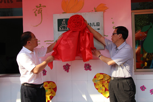 基金会王林理事长和修水县县委副书记欧阳明华为幼儿班揭牌